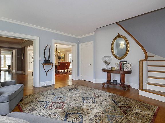 Fall in Love... This Mid-Century Colonial has been totally renovated and redesigned for modern lifestyles. Highlights include a gracious entry Foyer with side curved staircase with views of the Living room and Dining room. The Living room opens into the Dining room and boasts a grand size fireplace and hardwood floors. The adjacent Butlers Pantry is equipped with a full size wine refrigerator and can service the Living room, Dining room as well as the Billiard room. The Game room boasts a coffered ceiling, fireplace and built-ins. The well designed gourmet white Kitchen offers a generous size breakfast bar, SS appliances and large eating area. Front and back staircases lead to private family bedrooms, offices and sumptuous private Master Suite with fireplace, dressing area w/built-ins and luxurious bath. Car buffs will love the detached two story Barn with Media room and attached wine or beer brewing room. A Wonderful home for entertaining!
