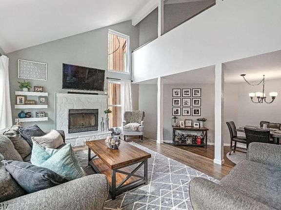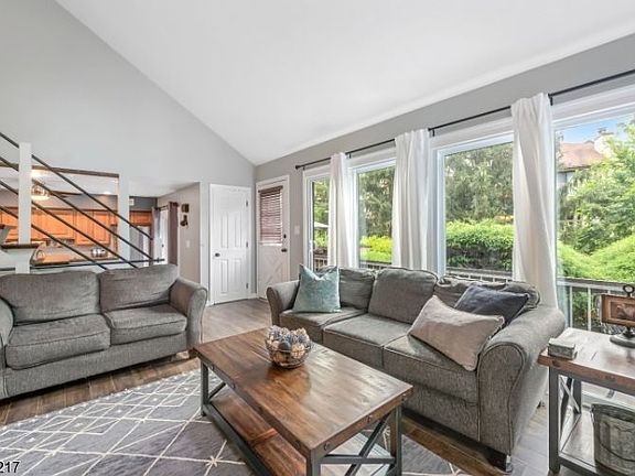 Beautifully updated unit with view of open lawn. New windows, doors and baths. New engineered scratchproof, waterproof flooring throughout. Great loft area with new wainscotting overlooks living room with cathedral ceiling, wood burning fireplace and sliders to deck. Newly updated powder room features stacked lodgestone wall and custom vanity. Custom hardwood breakfast bar in kitchen in addition to new backsplash and stained hardwood pantry shelving. Brand new door in kitchen leads out to patio with outdoor dining area. Both full bathrooms on second floor have been beautifully updated. Finished exercise room in basement with additional storage. Garage complete with workbench and additional shelving for storage. This particular location affords privacy and access to open yard area. A must see!