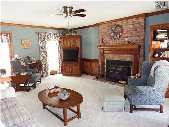 Place your rocking chairs on this wrap around front porch. Relax on your deck with wooded private backyard. Immaculate inside. Recently painted throughout. Fireplace and wainscoting in great room. Large eat-in kitchen with solid surface countertops and white cabinets. Large landscaped yard with great curb appeal.