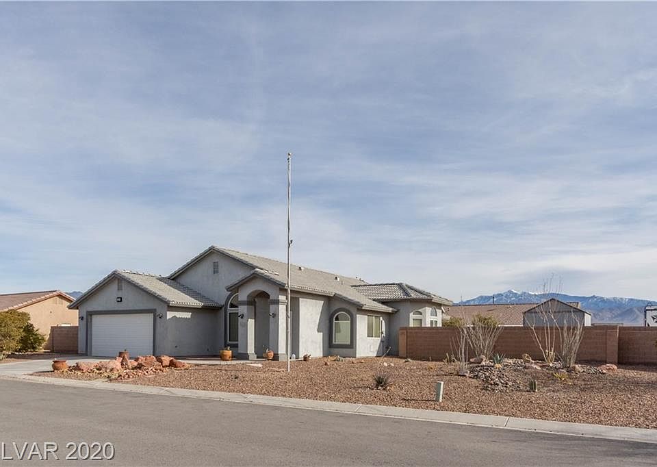 OPPORTUNITY AWAITS!! YOU TRULY NEED TO COME AND VIEW THIS SPECTACULAR PROPERTY HERE IN WONDERFUL PAHRUMP FEATURING 3 BEDROOMS, 2 BATHS, FORMAL LIVING & FAMILY ROOMS, 2 CAR GARAGE WITH TONS OF STORAGE, OPEN FLOOR PLAN THROUGHOUT, CEILING FANS, BLINDS, ALL APPLIANCES CONVEY. HUGE LOT, 12X16 SHED, HUGE 18x10 COV PATIO, MAGNIFICENT VIEWS OF MT CHARLESTON, GORGEOUS TILE FLOORING THROUGHOUT, SOAKING TUB, SEP SHOWER AND DUAL SINKS AT MASTER BATH.