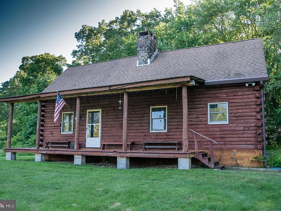 Love hunting, fishing or just relaxing! This log home is your perfect retreat. Are you looking for a vacation home or just want to feel like you're on vacation every day? This log home on a non-thru street just a stone's throw from Lake Nockamixon. It's just that rough-hewn, charmingly rustic home among the flowers that you've always wanted but could never find. All by itself with nothing around but peace and quiet and the wind whispering in the trees - it's like sleeping in a tree house! Nearly across the street from the lake and midway between Routes 313 and 611 and sitting pretty on a ten acre lot - if you like to spend your time outdoors this is the best location. Lake Nockamixon offers more than 1,450 acres and four public launching areas and whether it's boating, biking or hiking it's all close by. Hunter's paradise ! This home backs up to 2,100 acres of state game land property. This is a true log home with a rocking chair front porch to watch the butterflies on and entering the front door the living room there is a cathedral ceiling with exposed beams and a muscular two story stone wood burning fireplace. The farmhouse kitchen has the most amazing old fashioned wood cooking stove! It's a true eat-in with room for a dining set and full of cabinets and an expanse of countertop. There are two bedrooms on the first floor with a full bath. On the second floor the spacious landing would make a great reading nook. Bedroom three features a vaulted ceiling, built in shelves and a second fireplace! The primary bedroom has two walk in closets and both rooms share a full bath. There is also the option of closing the door to the hallway so that the bath and bedroom create an owner's suite. Additionally there is a pantry with spiral staircase down to the large basement and laundry area and a sweet little garden shed. If you are looking for charm, character and natural surrounding both inside and out this home is a wonderful choice. Generac whole house generator a definite plus! Just 80 minutes from NYC and Philly and 30 minutes to Doylestown and Bethlehem.