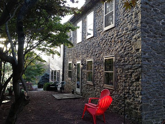 Beautifully and meticulously restored and renovated, historcal (cir.1800) fieldstone farmhouse, gratiously set on 17.50 acres of subdividable and unspoiled natural woodlands. There are two separate suites on the second floor of the main residence, each accessible by their own stairways. On the the first floor, there is a huge country kitchen with open beams and more than ample custom cabinetry. The spacious living room features open beams and a raised hearth stone Jotul fireplace. The deep window sills, open beams, stone fireplace and wide plank floors create the feeling of living in a period when life was unhurried and uncomplicated. Entertaining is a delight, having the three season solarium right off the kitchen, accessible by three sets of French doors, overlooking a wonderland of mature, wooded forest and pool. The detached, stone guest cottage is an efficient, first-class, in-law suite, office, art studio, or perfect for visiting family and friends. Potential 3 to 5 lot sub- division.