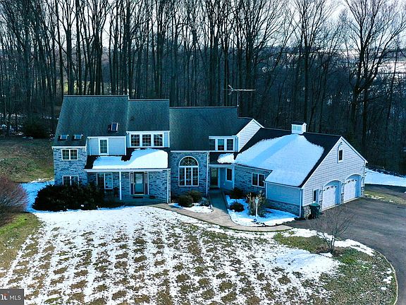 This property is going to onsite auction 6/6/2024 at 6:00 PM and is being sold with reserve. LISTED PRICE IS ONLY A SUGGESTED OPENING BID, AND IS NOT INDICATIVE OF THE FINAL SALES PRICE WHICH WILL BE BY SELLER CONFIRMATION DAY OF AUCTION. Terms: Down payment of $50,000.00 required day of auction. Settlement on or before July 26, 2024. Transfer taxes to be paid by buyer. Real Estate taxes shall be prorated. 4.8 acres with 3 bedroom 2 1/2 bath house with timber frame interior. 1st floor has spacious kitchen with tile floor, lots of counter & cabinet spaces and additional peninsula area. Dining room with hardwood floor & large picture window. Sunken living room with gas burning stone fireplace with stone hearth & wood mantel. Also, foyer with hardwood floor, laundry and 1/2 bath. 2 first floor bedrooms with double closets and full bath with double vanities. Spiral stairs to loft with sitting area. 2nd floor Master suite with private deck. Master bath with Jacuzzi tub & walk in shower. House has 2981 finished sq ft and is loaded with extras such as breakfast nook, 2-story sloped & vaulted ceilings with exposed beams, large windows for natural lighting, cedar closet, skylights, loft, recessed lights, full basement and much more. Attached 2 car garage with 2nd floor storage. House has oil furnace w/ hot water radiant heat and central air. Property has onsite well and onsite septic.