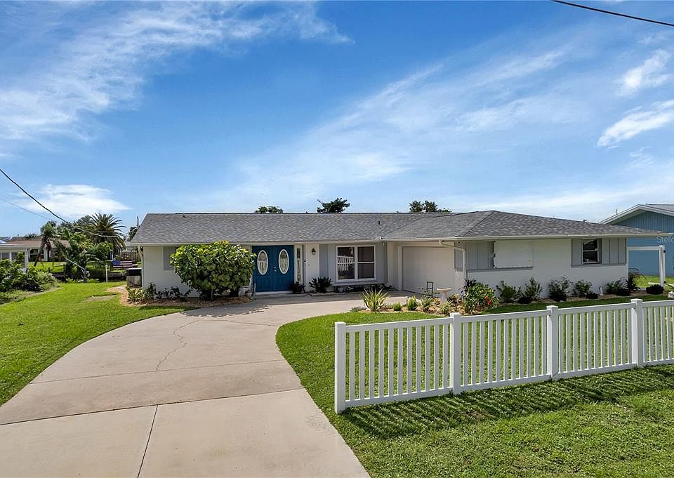 Motivated Sellers! Bring your offers! Welcome to your waterfront paradise! This exquisite 3-bedroom, 2-bathroom home on a cul-de-sac has been thoughtfully upgraded to provide the utmost comfort and luxury. As you step inside, you'll immediately notice the recent addition of new luxury vinyl plank flooring throughout. To ensure your peace of mind, the property is equipped with state-of-the-art security cameras, which are strategically placed to monitor every corner of your home. Step outside to appreciate the meticulously redone landscaping that enhances the curb appeal and charm of this property. Recent upgrades include a new roof, electrical panel, pool pump, and whole-home water softener system, providing you with worry-free living. This property lies in a prime location with a mere 15-minute boat ride to open waters, and only one bridge to navigate. The dock and 20,000 lb boat lift, which have been upgraded with new concrete pilings, open the door to incredible adventures on the water. Bask in the sun-drenched pool area, host gatherings on the patio, or set sail for new horizons from your own backyard!