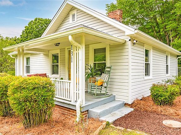 Adorable move-in ready bungalow with ALL the charm nestled on a quaint street in central 27106 location. Rocking chair front porch, inviting living room w/natural light & heart of pine floors. Formal dining room + 2 oversized bedrooms. Gorgeous renovated kitchen w/custom cabinets, granite counters, SS appliances & oversized island. Renovated bath w/subway tile & lovely finishes. Replacement windows 2020! Unfinished basement offers ample storage! Mudroom w/laundry could also function as art/craft/flex space. Large private yard. Live minutes from Wake Forest, grocery, restaurants, shops, & have easy access to main arterial roads. Well cared for and cute-as-a-button! Don't miss it!