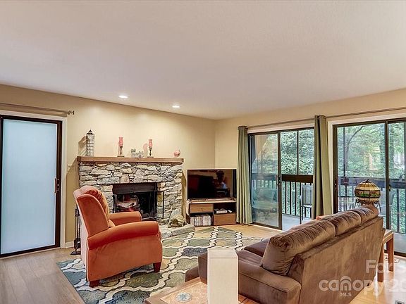 Updated condo has it all! Open floor plan, bamboo flooring, and 3 porches create the perfect space for entertaining or relaxing. Fabulous location just minutes from Lake Julian park and convenient to schools, shopping, and Biltmore Park Town Square. The updated kitchen features granite countertops, a breakfast bar, and stainless steel appliances. Cozy up to the wood burning fireplace in the winter or enjoy nature on the large screened-in porch. Spacious primary bedroom includes multiple closets and dual vanity sinks. Pool access, water, sewer, and trash pickup all included with the HOA.