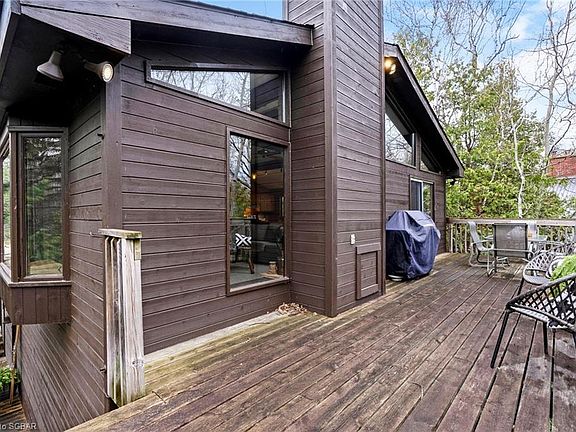 CLASSIC SKI CHALET in the heart of Craigleith. This 6 bedroom, 5 bathroom chalet is situated on a substantial, private wooded lot in highly sought after Georgian Woodlands. The upper level of this reverse plan chalet features open concept living, with soaring cathedral ceilings and a wood burning fireplace. The dining/kitchen/great room area offers maximum entertaining space and allows for large gatherings. The main floor includes a spacious foyer with mud room, 2 baths, one with a sauna, 3 sizable bedrooms and a Family Room, great for family movie night. 2 additional bedrooms one with an ensuite and the other with a semi ensuite on the lower level as well as a large workshop/storage room, great for tuning your boards. This truly remarkable home is conveniently located only a few minutes drive to the shops and bistros of Thornbury and Blue Mountain Village and a short walk to Craigleith and Alpine Ski Clubs. A must see to truly appreciate. Signed 244 - No pre-emptive offers. Sellers will be reviewing offers at 1:00PM Monday April 12th. Please submit all offers by 12 noon with an irrevocable of 7PM.