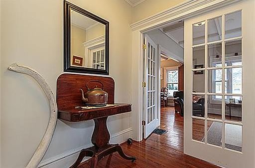 Updated antique in historic Fairhaven Center. 2 bedroom, 2 bath home situated on a double lot. Walk-in closets with built -ins. 3rd room on 2nd floor perfect as a small bedroom, home office, nursery or laundry area. Updated kitchen with granite counter tops, custom cabinets and stainless steel appliances. Charming boxed-beam ceilings in first floor formal rooms. Abundant natural light from insulated windows. Hardwood floors throughout. 2 Car Garage, paved drive way and large fenced yard. Private patio. Short walk to library, town hall, post office, harbor and Fort Phoenix. Great location.