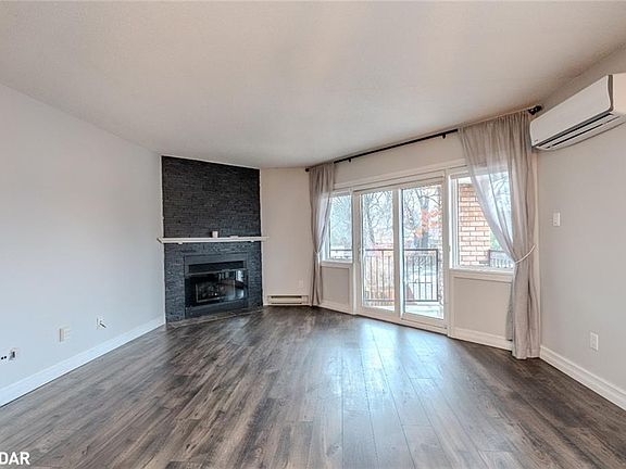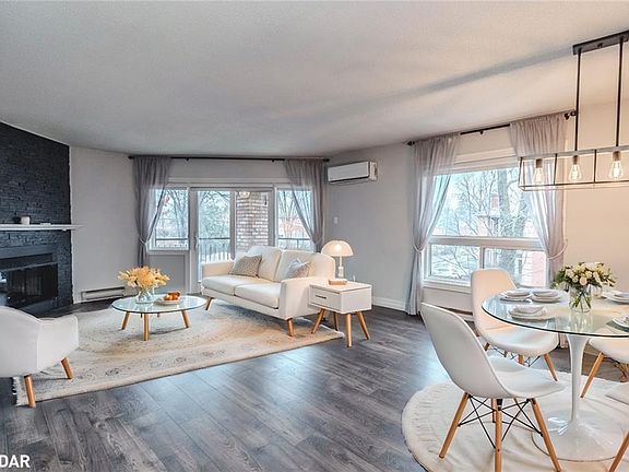 YOUR IDEAL CONDO IN BARRIE'S VIBRANT DOWNTOWN – RENOVATED & READY FOR YOU! Welcome to 131 Clapperton Street, Unit 303, a fully renovated 1,000 sq ft corner condo that's all about comfort, style, and a location you'll love. Located in Walnut Grove, this condo is just a short walk to all the best parts of downtown Barrie, including the Farmers' Market, City Hall, parks, and dining options, with the peaceful shores of Kempenfelt Bay nearby. Plus, commuting is easy with quick access to Highway 400. Inside, you'll find a bright, open-concept space with tons of natural light pouring in through the large windows. The cozy gas fireplace with a stone surround adds a touch of warmth, making this a place you'll love coming home to. The kitchen is a real highlight, featuring white cabinetry, sleek quartz countertops, a subway tile backsplash, and stainless steel appliances. There's also a custom breakfast bar with seating, perfect for a quick meal or hanging out with friends. Step out onto your balcony to relax and enjoy a BBQ or simply unwind after a long day. The condo offers two spacious bedrooms with plenty of closet space and a freshly updated 4-piece bathroom. With in-suite laundry and a Cool King ductless air and heat system for year-round comfort, this condo is as practical as it is stylish. The building has great amenities, too, including a common room with a pool table, a recreation space, visitor parking, and a water softener. You'll also have a surface parking space and a storage locker. Don't miss your chance to own this fantastic condo in a vibrant part of Barrie.