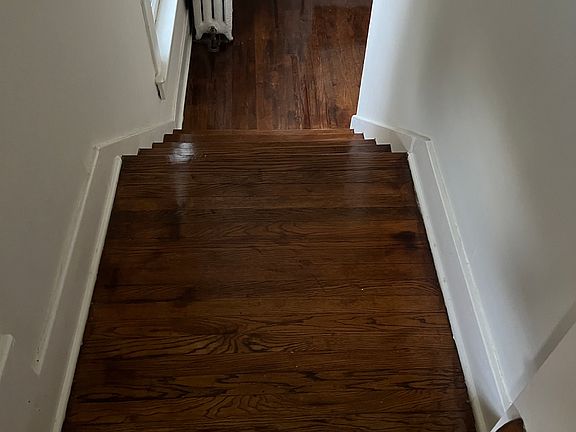 Spacious upstairs of beautiful stone house built in 1915. Remodeled kitchen. Lots of windows and high ceilings. Also has a large finished attic. Window AC and radiator heat. Includes all appliances: dishwasher, washing machine, dryer, refrigerator and stove. Text 581-6728 to make arrangements to view property. Off street parking. Gas and water utility bill is split between the upstairs and downstairs, because house has radiator heat.