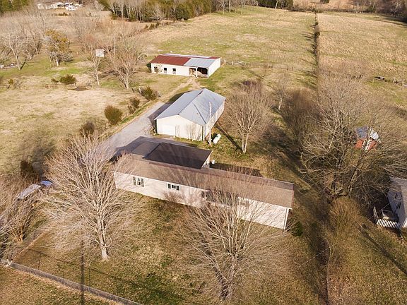 3 bedroom 2 bath home sits on 6 acres with pond. Covered back porch has an amazing view. Open floor plan with living room and sun-room. Spacious kitchen with Corian counter tops. Split floor plan with master bedroom separate from 2nd and 3rd bedrooms . Fenced and crossed fenced with detached 30x50 2 car garage or shop with concrete floor and electric. 220V for welding,30/50 amp for RV. 6 Stall Barn with electric, water, tack & feed room, hay lobby,well house and washing station .