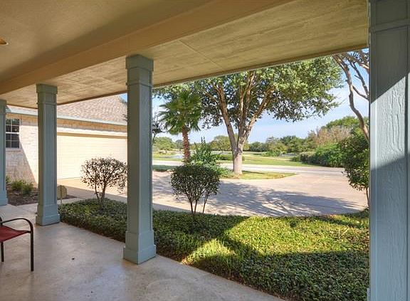 Conveniently located on a quiet street within the Sun City Community, this Brazos plan looks out to ponds located on Legacy Hills Golf Course. Built with a swing-entry garage & wraparound porch this home also has a charming enclosed porch (not included on tax rolls). Other features: laundry sink, 10 ft. ceilings. The home is positioned so that there are no direct views in back from neighboring homes. Neutral interior colors provide you a blank slate with which to decorate. Add this one to your list!