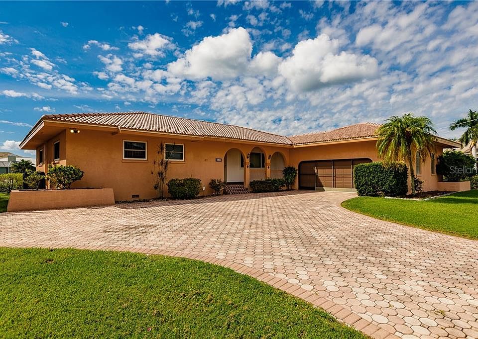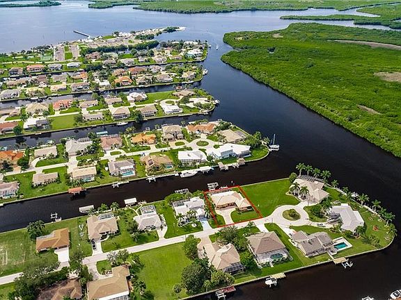 Immaculately maintained sailboat waterfront pool home on quiet cul de sac on almost a third of an acre has plenty of room for family and friends with over 2,100 square feet of living space, living and dining, family room, and spacious kitchen with breakfast nook. Enjoy boating at its best with 2 docks, 10,000 pound boat lift, and 100 feet of water frontage with immediate access to Charlotte Harbor and then on to the Gulf of Mexico. Home offers new carpet, fresh interior paint, tile roof in 2005 with 30 year warranty, new water heater, newer dual pane windows, blinds throughout, and lots of storage with pantries and closets throughout. Kitchen boasts pantry, smooth counters, wood cabinetry with deep drawers, tray ceiling with crown molding, and opens to the breakfast nook. Master suite has 2 walk in closets and private bath with custom tiled shower, dual sinks, and access to pool area. Heated pool and spa are surrounded by brick paved deck with panoramic view of waterway. 50 by 21 Lanai is perfect for entertaining and runs almost full width of home. Oversized side load garage completes the package. Lovely curb appeal with tile roof and brick paved drive and front entry. Proximity to local beaches, dining, shopping, and golf courses makes this property ideal for the Florida lifestyle. Also, easy access to public parks with bike and walking trails and picnic areas. Don't miss this opportunity to start enjoying waterfront living in this spacious home.