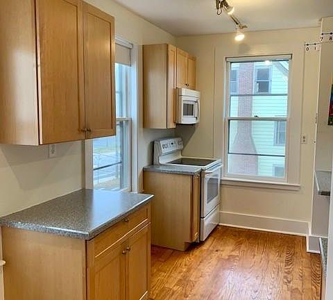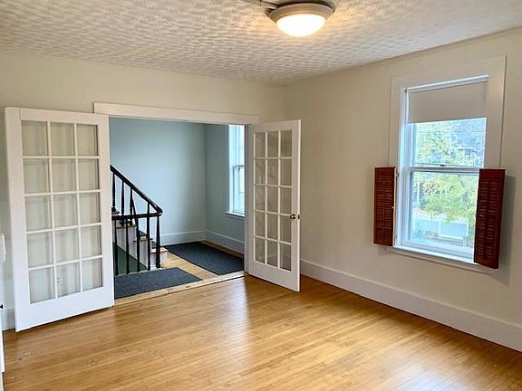 High ceilings and hardwood floors in Grand Victorian, 2nd and 3rd floors of nice 2 family home, large living room with French doors, built in bookshelf, formal dining room, office, updated kitchen with small breakfast bar, ample cabinets/counters, dishwasher too, 2 full baths, huge bedrooms with skylights, washer/dryer on first floor, great yard, plenty of parking too. 1st month, last month, $300 security deposit, Broker Fee, lease, no smoking please, utilities are not included, 3 parking spaces, yard care and snow removal on driveway is included in the rent. Pets considered on a case by case basis.