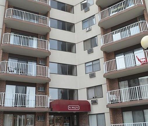 Sun-filled penthouse level two bedroom, two bath home with corner exposures and great views! The spacious living/dining room opens out to a private balcony. The large kitchen has ample cabinet and counter space, and the fan is vented to the outside. The master bedroom is large with a walk-in closet and en-suite master bath with a shower. The second bedroom is also spacious and easy to furnish, and the second bath is a tub/shower combination. Common laundry is just down the hall and the full deeded garage parking space and second full outdoor parking space are directly accessible via the elevator. There is a large common room for functions and from Memorial Day to Labor Day there is a swimming pool for the exclusive use of the residents. In-wall air conditioners keep it cool in the summer. The building is professionally managed with a on-site management office open during the week. Don't miss this opportunity!