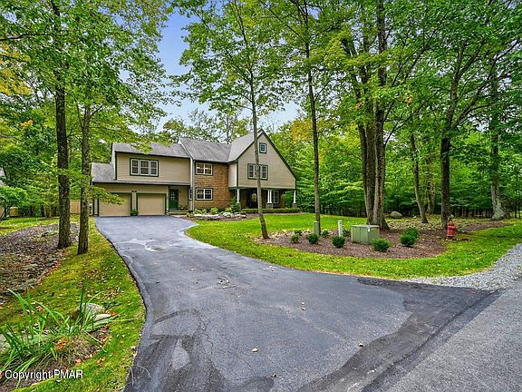 Stunning immaculate home with open floor plan in beautiful Buck Hill Falls. Very private setting overlooking Griscom Run and Chestnut Mountain. Features include a dramatic double height living room with floor to ceiling propane stone fireplace, a gorgeous chef's kitchen with large center island, breakfast room, formal dining, huge screened porch and open deck perfect for enjoying the views and sounds of the stream below. All high end finishes including rough hewn wide plank hickory flooring, custom cabinetry, stainless steel appliances, and granite and quartz counters. 4 bedrooms, 3 baths upstairs including an enormous master suite. Full finished basement with media room, family room, kitchenette, 5th bedroom and full bath with steam shower. Full house generator and that garage!! Must see!