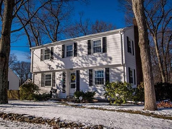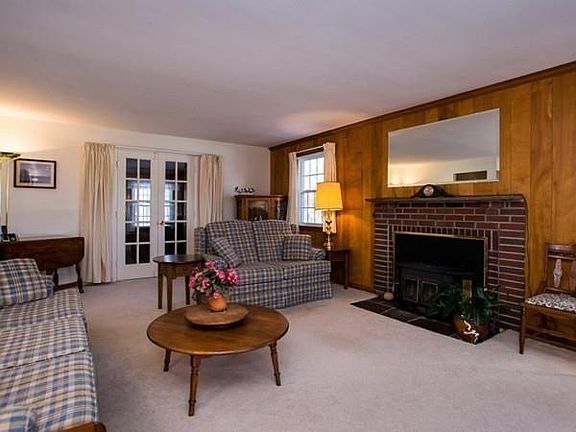 Super bright and cheery 1950's 3 bedroom, 1.5 bath Colonial located on a large level double lot. Front-to-back formal living room with fireplace and french doors to the den. The dining room is off the foyer and both rooms have hardwood under the carpets. The kitchen has been updated and offers ample storage, expansive countertop space and a dining area. The den and screened porch flank the rear of the home and no doubt has seen some fun times. The stairs and 3 bedrooms also have hardwood under the carpets and lots of natural light. Nearby are two neighborhood schools, corner variety store, well lit skating pond and conservation land with walking trails. 2 Sheds provide plenty of storage for your outdoor equipment. Meticulously maintenance and neat as a pin!