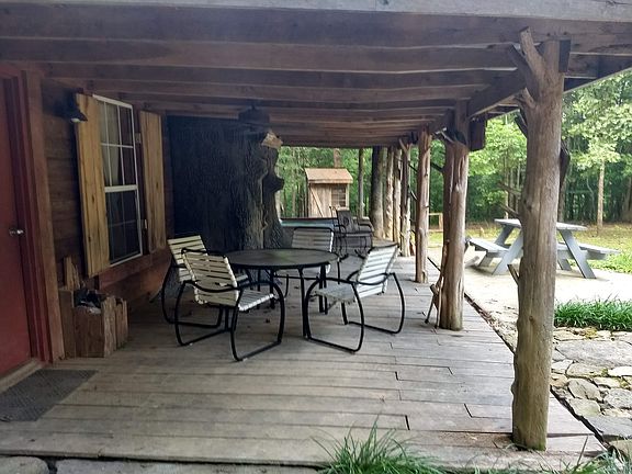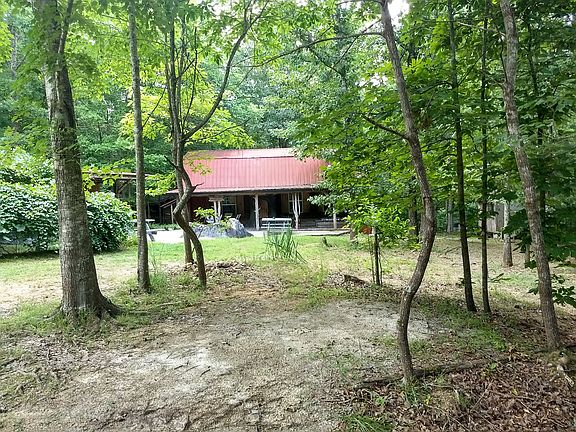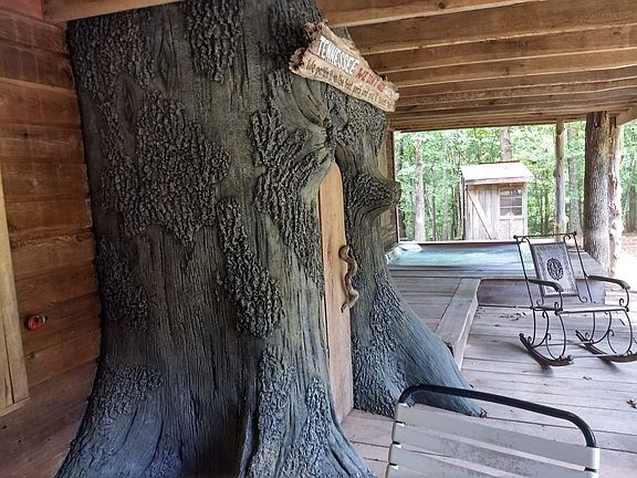 Cabin with loft, hardwood floors, metal roof, 3 outbuildings with additional beds. Sleeps up to 14 people, and lots of places for campers and RVs. Just off the Natchez Trace.