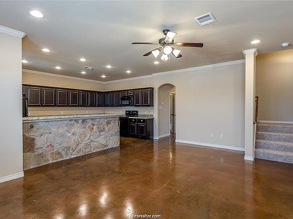 Spacious 4 bedroom 4 bath townhome at The Barracks features granite countertops in kitchen and bathrooms, stained concrete in common areas and carpeted flooring in bedrooms. Each bedroom has access to its own bathroom. Washer, dryer, and refrigerator are included in lease. The Barracks offers a variety of amenities to experience which include wakeboarding, sand volleyball, gated dog parks, an outdoor fitness park, basketball court, and BearX which features a gorgeous, Vegas-style pool and lazy river. The HOA provides lawn care, cable, and high-speed internet service. **stock photos, concrete patio**