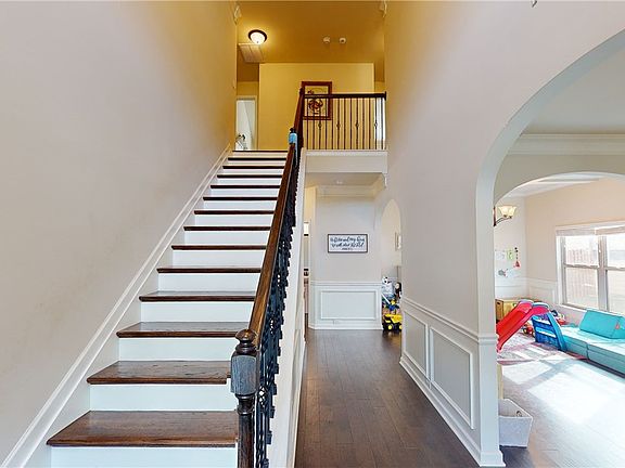Packard Plan: Home has it all: Stair have hardwood, all hardwood floors on first level, Gourmet Kitchen with SS double oven, linencabinets,cook top, microwave, french door refrigerator, 10x18 covered patio with gas line for grill, fenced in yard, stone gas fireplace infamily room, oil rubbed bronze fixtures throughout, covered ceilings, backsplash in kitchen with granite. Extra lighting, piedrafinacounter in Master bath, Master is tile.