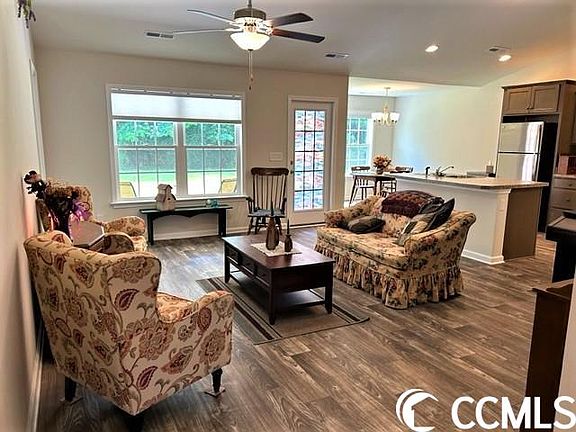 This is a GREAT HOUSE in a quiet development and is PRISTINE condition - not even a nail hole in the walls!! The Seewee model has an open floor plan with the spacious great room, kitchen & dining room in an L-shape. The great room & kitchen have a vaulted ceiling. A covered patio area just off the great room extends your space outdoors when entertaining. The kitchen has stainless steel appliances. There is a laundry room with washer & dryer that adjoins the kitchen & garage. The primary bedroom is large with a tray ceiling, walk-in closet, & adjoining bath with walk-in shower. The other 2 bedrooms are just off the foyer area as well as another full bath. All bedrooms are carpeted. The garage is large & is clean!! The exterior of the house has vinyl siding which means low maintenance. The roof has 30 yr architectural shingles and the windows are low-E vinyl windows. Located on a cul-de-sac, there is no through traffic on this street and the wooded area behind the house adds a layer of privacy to create a quiet living environment. Georgetown Estates is just outside of Andrews & only 12 miles from historic Georgetown. It is also convenient to Pawleys (32 mi), Myrtle Beach (53 mi), Mount Pleasant (50 miles), & Charleston (59 mi) giving you access to employment, airports, & entertainment there. Come see this gem of a home - it won't last long!