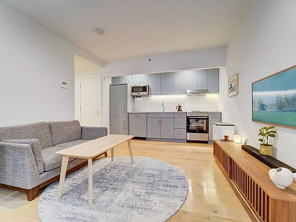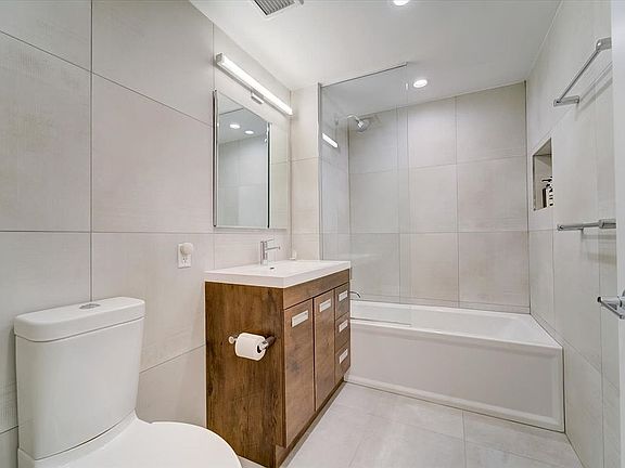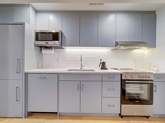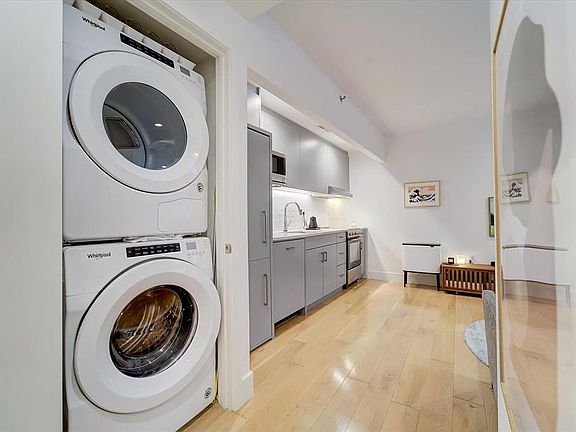 Welcome to 4B a extra large pindrop quiet 527sqft Studio with amazing finishes, This amazing home features White oak flooring oversized windows and Central air! The kitchen features Ceaserstone countertops customized cabinet and high end appliances from Liebherr and Bosch. The spa like bathroom has floor to ceilings tiles with Kohler and Moen fixtures, along with a deep soaking tub. This amazing studio also offers an IN UNIT giant full size washer and dryer.
