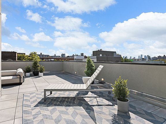 Prime Williamsburg Penthouse With Massive Wraparound Terrace! A sublime Williamsburg penthouse boasting elegant finishes and a 1,709 sq. ft. wraparound terrace, this 2-bedroom, 2-bathroom condo is a portrait of contemporary Brooklyn luxury. Features of the home include gorgeous white oak floors, oversized windows, central heating and cooling, and a convenient in-unit washer/dryer from Whirlpool. Past a tasteful entry foyer adorned with a coat closet, the home flows into an open-concept living room, dining room, and kitchen. The living area leads out onto a terrace perfect for al fresco dining or sun lounging, while the kitchen is equipped with sleek Caesarstone waterfall countertops, a matching backsplash, custom cabinets, and a suite of fully-integrated high-end appliances from Liebherr and Bosch. The master bedroom possesses a reach-in closet and an immaculate en-suite bathroom with floor-to-ceiling textured porcelain tiles, Kohler and Moen fixtures, an Orren Ellis vanity, and a deep soaking tub. The second bedroom has its own reach-in closet and easy access to a second full bathroom. Both bedrooms have direct access to the terrace. The terrace has a built-in grill. A collaboration between experienced New York builders, Saddle Rock Equities and Eisner Design, The Devoe is a refined boutique condominium nestled in the trendy neighborhood of Williamsburg. It is surrounded by a diverse array of restaurants, bars, cafes, and shops, and is close to McCarren, Cooper, and Sternberg Parks. Amenities include a 500 sq. ft. gym with state-of-the-art equipment, a virtual doorman system, a bicycle room, private storage and on-site parking for purchase, and a spacious rooftop deck with dining furniture, a grill and utility sink, and picturesque views of the Brooklyn and Manhattan skylines. The L subway line is around the corner. THE COMPLETE OFFERING TERMS ARE IN AN OFFERING PLAN AVAILABLE FROM SPONSOR. FILE NO. CD18-0284.