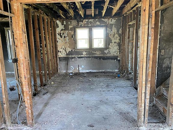 H2171 - This is truly a Rehabber's delight. The outside is solid brick with a new roof, metal doors and new vinyl windows. The inside was the scene of a fire that took out wiring, plumbing and some of the old style cement board. Much of the charred interior sheet rock walls have already been stripped, leaving an open floor plan that can easily be modified at this point. To be clear, this house will need a new furnace, AC, plumbing, wiring, and drywall. The floors appear to be solid wood floors that will pop back to life with a sanding. Room measurements are shown using the existing partition walls, although moving them is an easy option. The upstairs is a huge area that occupies the entire upper level. It would make a fantastic master bedroom with room for a nice sized 2nd floor bathroom suite. The detached double bay garage needs to be rewired. The back yard is huge, fenced and has back access from the alley way. The inside is a blank canvas to try your rehabbing skills on.