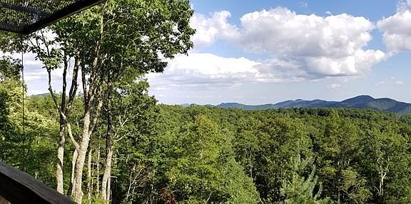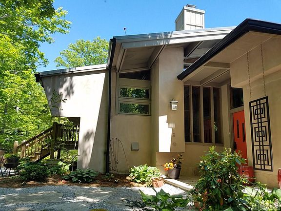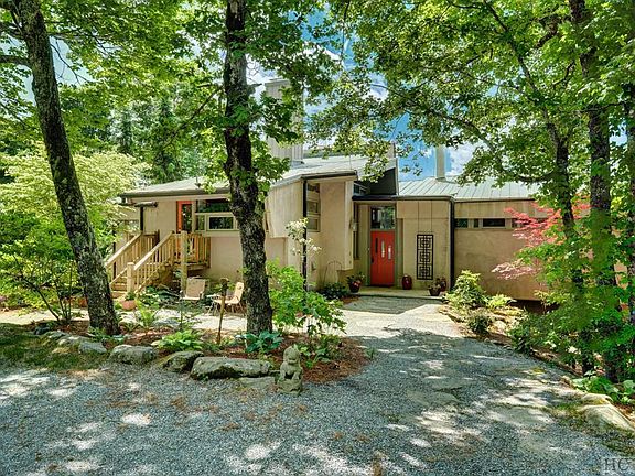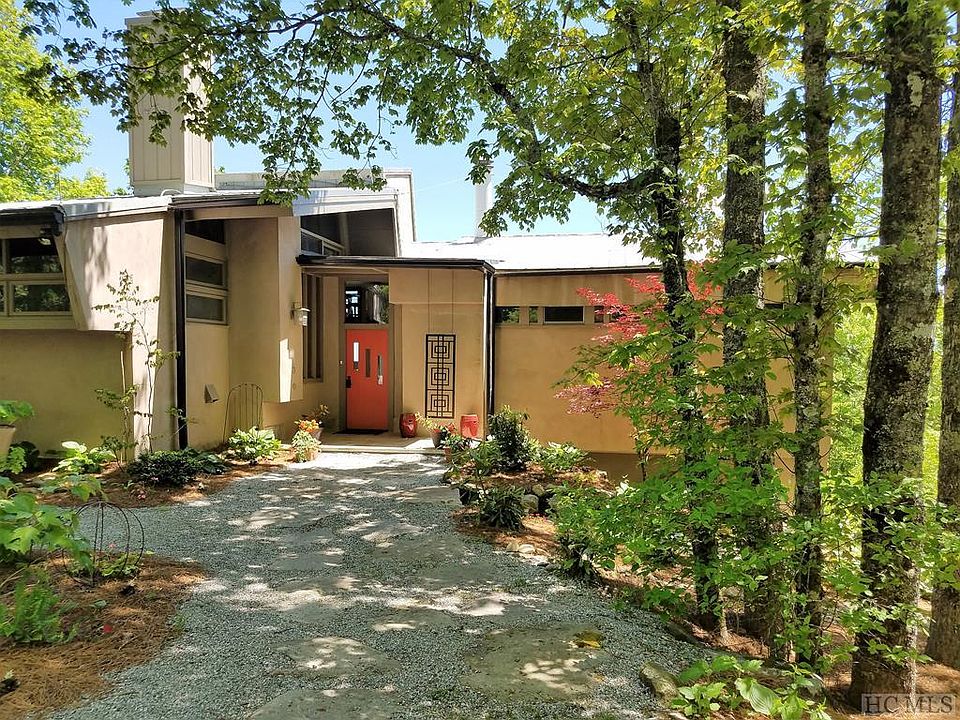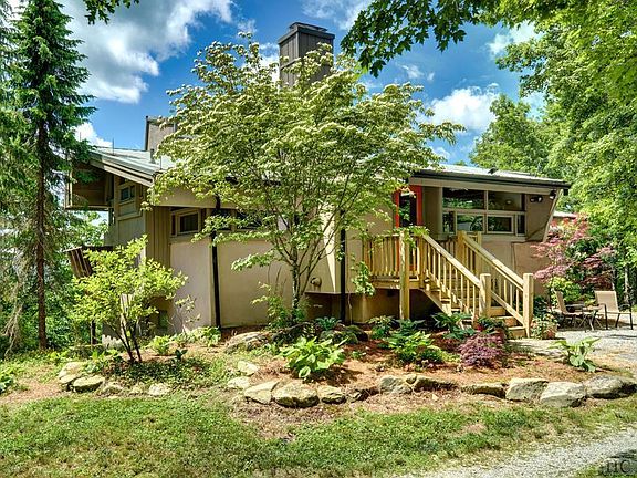 Jim Fox Home Remediated, Renovated, situated atop a 20-acre parcel overlooking Panthertown Valley & 3 Mountain ranges at approx 4200' in Elevation. This Mountain Estate faces south, using the terrain masterfully, the modernist house features a view from all 3 levels. Secluded on a mountaintop in a park-like setting, with over an acre of a flat grassy yard. Plenty of parking! Renovated (UPDATED), Inside this uniquely designed home, a must see! To many features to describe, open floor plan that allows access to every part of the main level from the kitchen to the living area, to the dining room to the large formal dining room located on a balcony with panoramic views thru newly installed windows, to the crow's nest balcony with built-in sleepers overlooking the living room. A Master on main with a vintage 60's mod porcelain enamel wood stove on the stone seating area, with sliding door to his and hers closets, heated bathroom floors, curbless shower, plenty of storage, & private access to the back deck with spectacular long-range mountain views. A bright modern kitchen with oversized island, gas downdraft, beautiful brushed Arctic Ice granite with chiseled edges, drawers, shelves, and 2 pantries for storage. Downstairs features two spacious bedrooms & private deck access allowing plenty of light & enjoy the same breathtaking views, a large family room w/outside entry, bathroom, large storage room, linen closets. Tons of extras, massive stone fireplace that is the focal point of the main level with a fireplace in the kitchen and living room, a 72" Victoria & Albert pedestal tub for long soaks, grilling porch, zoned HVAC with large central dehumidifier, & two levels of decks. A detached covered open front 2 car garage with a large utility/storage room and a separate art studio with a view for inspiration. Automatic House Generator! Furnished with some exceptions