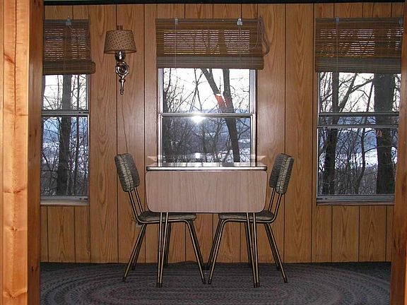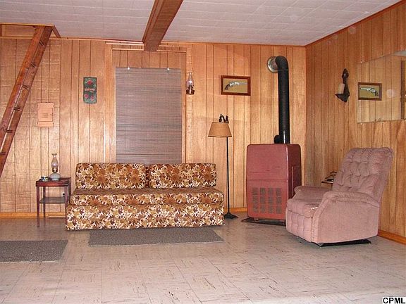 Wooded retreat near State Game Lands features three bedrooms, enclosed sunroom with scenic view and kitchen bar with nostalgic swivel stools. Sold with furnishings, this rustic cabin with metal roof and vinyl siding makes an ideal getaway for hunters and outdoor enthusiasts. Property has an outhouse, but no indoor plumbing means no worries over frozen pipes during the winter. Proudly maintained by the same owners over 40 years.