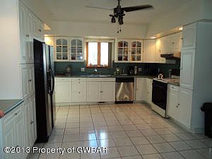 Open floor plan, living room, dining room, and kitchen. All open space, large kitchen with lots of cabinet space. Hardwood floors and tile in the kitchen. There are 3 unfinished rooms.