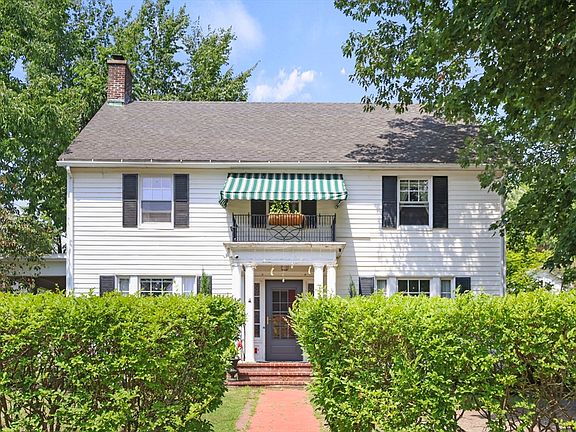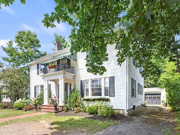 This charming Colonial-style home offers timeless character and generous living space. Once you enter, you will discover beautiful wood floors, high ceilings, French doors, and spacious rooms that create an inviting home throughout. The modern kitchen is a true standout, featuring stainless steel appliances, a double oven, granite countertops, and classic subway tile. The expansive living room centers around a wood-burning fireplace and offers direct access to the cozy side porch. A formal dining room, large pantry, and convenient half bath complete the first floor. Upstairs, you'll find four bedrooms and a full bath. A walk-up attic provides ample storage space. Outside features include a partially fenced-in yard, a detached one-car garage, and a patio area. Don't miss this gem!