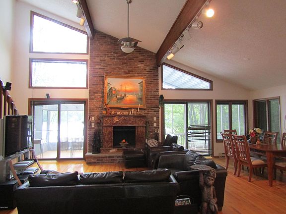 Contemporary Lakefront home features both inside and outside living! Wood burning fireplace for cozy cool evenings and huge outdoor screened in deck for summertime alfresco dining. Waterside living with a 12'x14' dock to tie up your canoe, kayak, or paddle board. Don't forget the fishing rod! Double lot for extra privacy. En suite master bedroom with lake view, 2 extra bedrooms, full bath, laundry room and spacious living area's.1 yr left on Special Assessmt $756.