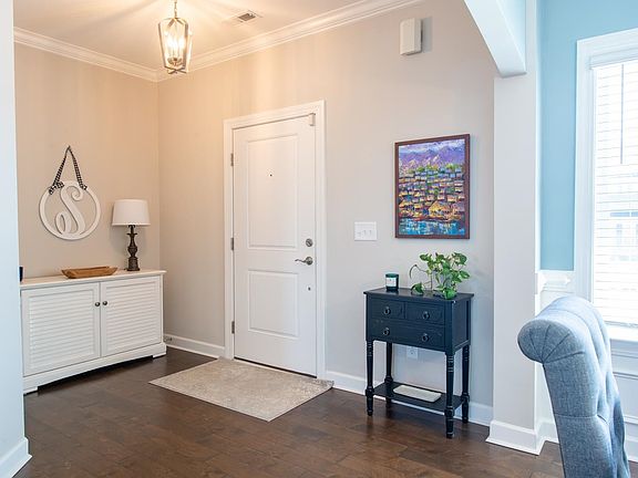 Stunning executive home with pond view in convenient & popular Wellesley neighborhood. Bright & open floorplan features hardwood floors in living areas. Many upgrades include top of the line finishes, extended driveway, screened porch & patio. Dining room w/coffered ceiling & wainscoting. Spacious family room has gas log fireplace. Gourmet kitchen w/quartz ctops & breakfast bar, stainless steel appliances including gas cooktop, double wall oven & refrigerator. Sunny breakfast room. 1st floor primary suite w/tray ceiling, walk-in closet & spa bath. All full bathrooms w/dual vanities. Bonus room w/storage. Rocking chair front porch. Finished side entry garage w/parking pad. Community amenties include pool & tennis. $2,500 in closing costs thru preferred lender.