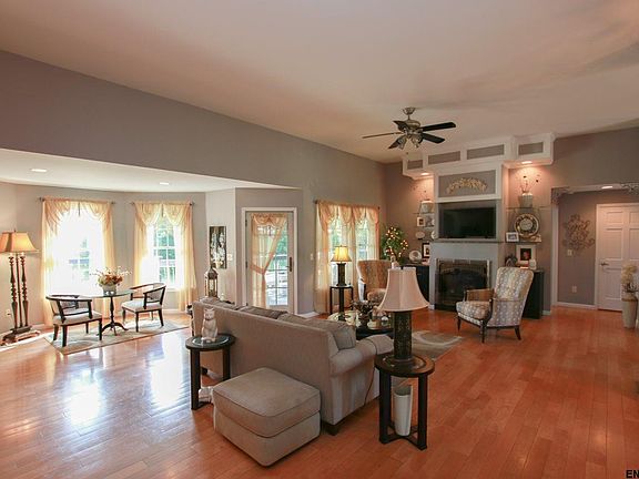This is an incredible, private 5 acre waterfront house w/ 70' HRBRRD permit on the Great Sacandaga Lake w/ a gentle slope to the lake & great views of the lake & mtns.House boasts a beautiful gas fireplace plus hardwood floors & a FR in the basement w/ a wet bar & plenty of storage. K is adorned w/ custom cupboards & granite. Master BR has tray ceilings. 2 additional 4 acre lots w/possible beach assoc can be sold after house is sold. Buyers must be pre qualified before scheduling a showing.See docs for info