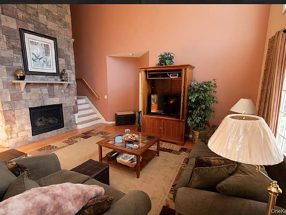 Inside, experience modern touches including stainless steel appliances , granite countertops, high vaulted ceilings, an amazing stone gas fireplace, and central air conditioning. The primary bedroom is located on the first floor and features an ensuite. The laundry room is on first floor for your convenience. The upstairs loft features a spacious second bedroom, a full bathroom, and a versatile area, perfect for relaxing or indulging in hobbies. Additionally, the full basement offers extensive storage space.