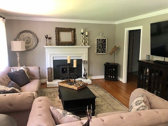 DARLING BRICK HOME ON DEAD-END STREET ACROSS FROM DGCC GOLF COURSE. Newer HVAC. Updated interior colors. Original hardwood floors. Tiled Kitchen and adjoining sun room. Separate laundry room with half bath. Two fireplaces, one with insert. Purchaser to verify fireplaces' usability. Kitchen appliances remain. Detach garage with workshop/storage area. Covered rear porch plus second porch off master bedroom. Flat yard.