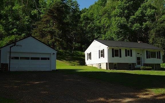 Completely renovated three bedroom, one and one half bath split level just outside the Village of Greene. Open concept living space and kitchen/dining area. Large bright living room with woodburning insert. Main floor also features three bedrooms and renovated full bath with new tub surround, flooring and vanity with granite countertop. Lower level highlighted by family room, laundry room/half-bath, and additional room well suited for office or bedroom. Cosmetically remodeled throughout with new carpeting, flooring, lighting, bathrooms, and kitchen updates. Lower level gutted with new walls, flooring recessed lighting. New well, metal roof, concrete patio. Basement walls offer new spray foam insulation. Newly sided two car detached garage with new roof. Great secluded setting just a stones throw to the Village of Greene.