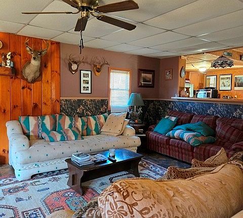 Cabin or full time living located on First Fork Road in Austin, Sylvania township, just outside of Costello. Close to Sinnemahoning State Park, Dark Skies in Cherry Spring. Fishing < Hunting & ATV/Snowmobile trails close by. This was originally a mobile home added onto in 1986 with a 24' x 24' addition with fireplace. Total of 3 bedrooms, with 3/4 bath. Full basement under addition, also, added 27' x 15' deck off of addition. Has a carport.