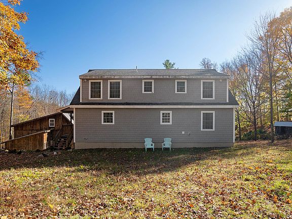 Country Setting, close to Concord. Welcome home to this beautiful 4 bedroom 3 bath cape, sitting on 5 acres with an oversized 3 car, unfinished garage. A massive farmers wrap around porch gives you the perfect place to enjoy your privacy and soak in the mature trees and flower gardens. Spacious kitchen with abundant cabinets. Beautiful details throughout the house with pine ceilings and archways. The home has been lovingly built by the current/ original owner. There is a small barn attached to the garage and multiple small chicken coops on the grounds. Only 17 minutes to Concord and 25 minutes to Laconia, you are in the perfect place to commute to work, enjoy the lakes and mountains or head south an hour to be at the coast. Included in the sale you have a large exterior wood burning stove which provides plenty of free heat for the winter month, and/or hot water year round as long as you feed it trees of your wooded lot. As well as a whole home generator.