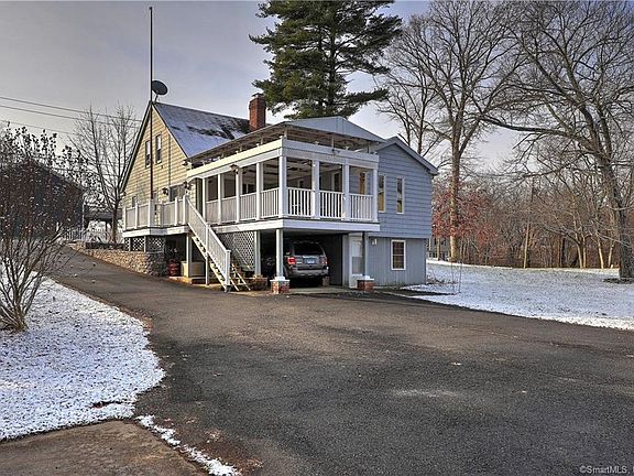 Like a Postcard from the Road and even better inside!--well- maintained and updated cape is surprisingly expanded and spacious enough for a big or extended family. The front room is the dining room--great for company and holiday meals.The remodeled eat-in kitchen features handsome wood cabinetry, tiled backsplash, granite counters and stainless appliances. Sliders open out to 13x21 ft deck for summer enjoyment. Laundry room off kitchen. There is a spacious family room addition with lots of windows overlooking the half-acre lot this home offers. 1st floor, two BRs and original bathroom. The 2nd floor has two more BRs with closets & accessible crawl space storage closet. Beautifully remodeled tiled-shower bathroom. There are hardwood floors and efficient thermopane windows throughout. Dual zone central A/C, gas-fired tankless hot water heater plus oil-fired boiler system. 200-amp electrical service. Big plus...an automatic self-starting Generac generator. The ground level LL features an in-law apt with living room, kitchenette, one BR & shower bathroom. Walk out to driveway & carport garage space under the deck. Additional detached 2-car garage with what was a full workshop in the loft. City sewer now exists in the road. Definitely not a Drive-By!
