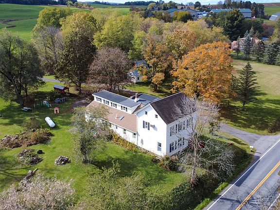 Large Country Farmhouse situated on 3 Acres in the Town of Florida, Montgomery County offering 4 bedrooms, 3.5 bathrooms, attached garage, detached garage, and an extra outbuilding. There is just over 2800 sq. ft. of living space here. Annual taxes with No exemptions $5,828. There is a Solar Lease a buyer will need to assume the remaining payments on which are $64.99 per month and there is approximately 11.5 years left. Original Lease was executed 8/9/2016. In August 2025 seller had blown in insulation installed in the exterior walls, attic and ceiling in the attached garage. The propane boiler is 2 years old. Sump pump in basement is 2 +/- years old. Stove element in living room is propane. There are 2 wells on the property. Nearly all the rooms in this home are very large. 1st floor has a large entry room off the garage and into the kitchen with a dining area, pantry area, 1 full bath with a walk in ceramic tile shower, formal dining room & living room with wood floors, a downstairs bedroom and a 1/2 bath (water is currently turned off in this bathroom). There are 2 staircases to go up and down. There are 2 small offices/dens upstairs, the primary bedroom suite that has a large walk in closet and full bath, 2 other bedrooms, another full bath and a laundry area in the back hallway. There is also a full walk up Attic. There is ample living space here to enjoy. Chicken coop is negotiable. Basement is a stone wall basement. This home is close to the Amsterdam thruway exit 27, as well as route 5s for a quick commute to the Capital District. Pre-approved conventional or cash buyers as we do have a fair amount of chipping and peeling paint on the detached garage. Well is on the driveway side of the home and the septic is on the opposite side of the house. Circular driveway for easy and plenty of parking. Call to make your appointment today. 24 hours notice would be greatly appreciated.