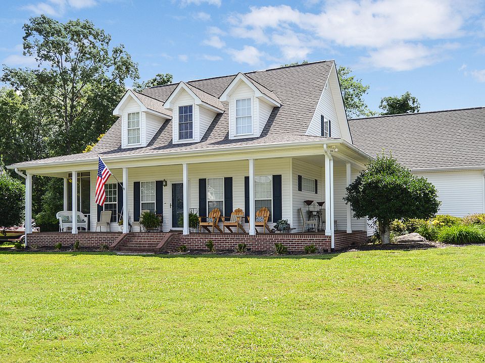 Cleveland's Fox Ridge Subdivision Welcome's You to a luxurious farmhouse style home with a large covered porch that wraps around the front. Step inside to hardwood floors gleaming from the large windows letting the natural light flow throughout. The living room features a brick gas fireplace with a white mantel and access to the side screened in porch, a great fresh air nook with morning coffee. The kitchen offers white custom cabinets, stainless steel appliances, and a bar top for extra dining space across from the breakfast nook within the bay windows. The formal dining room sits beside the kitchen with wainscoting all around. The master is on the main with an en-suite featuring double vanity, jetted tub, separate shower, and a walk-in-closet. The main level also offers the laundry room and a half bath for guests. Upstairs you will find two additional spacious bedrooms, a full bath and a second upstairs access to the finished bonus room. Walk outside to the back patio which makes a great spot for the grill and enjoy the view of the large fenced in backyard which includes a built-in fire pit and a storage shed. Call us today to schedule a private tour and see how easy it is to call this one home!