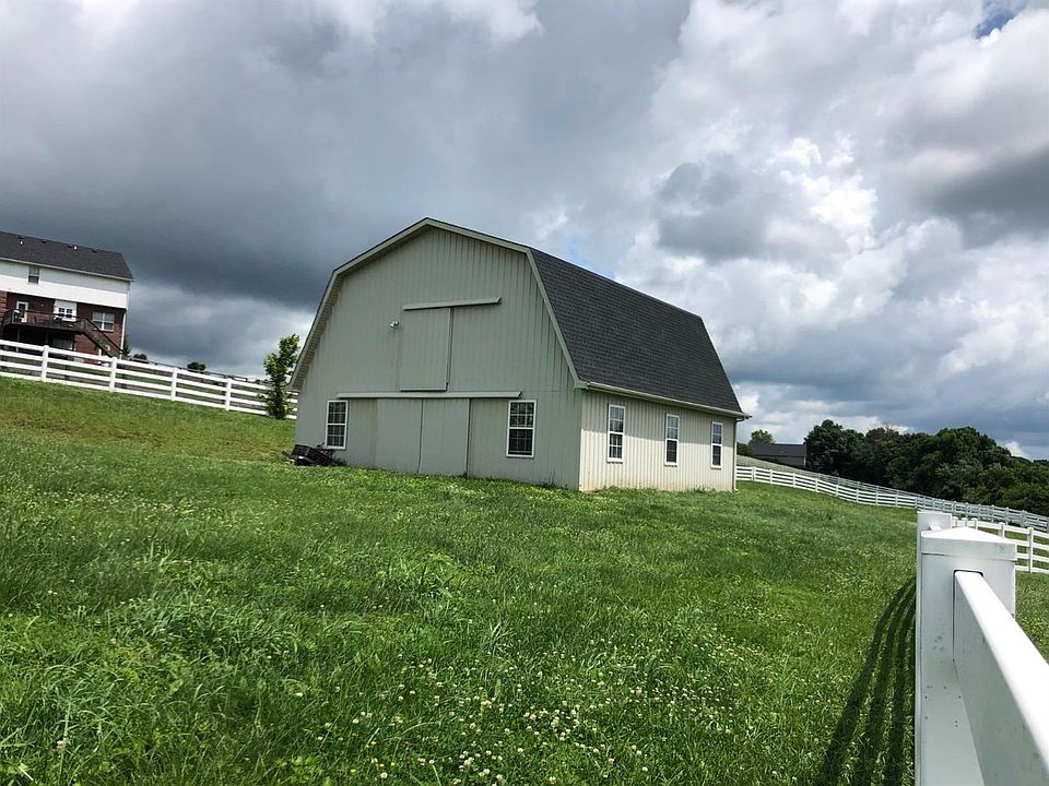 Four stall horse barn with loft. A bath stall and tack room. Lots 40 (1.75 ac.) and 41(1.19 ac.) of River Run. Possible lease.