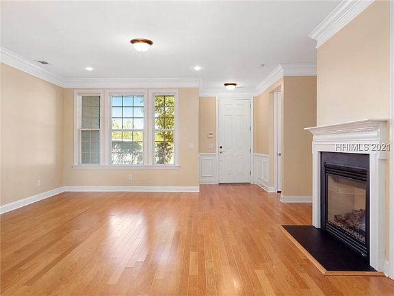 Former Model from Original Developer is not to be missed. One Level, end unit townhome has Beautiful Wood Floors, Granite Counters, Extensive Crown Moldings and Tray Ceilings, Tile showers, plus Tub in Master Bath, Fireplace, 8' Doors, Porches Front and Back, enlarged 2-Car Garage attached, Brick exterior. This is ready to move in immediately. This has the quality of a Custom Home as you would expect in a Developer's former Model Home. Full access to the Hilton Head Lakes Amenities: Fitness, Resort Pool, Residents Center, Pickleball Courts, Boat & RV Storage, Walking Trails, Boatable lake fully stocked, Golf optional, Full Service Restaurant