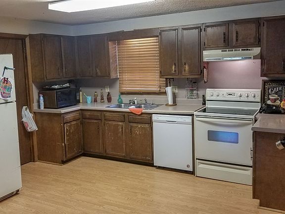 Large 4 BR 2 BA home in a quiet neighborhood with mature trees and a half acre corner lot. This 1716 sq ft open plan has lots of space for your family! Laminate floors throughout the living room, dining room and kitchen. Original hardwood floors in the bedrooms. Laundry room with storage cabinets is conveniently located to the side of the kitchen. Concrete patio at back of home. Carport with side entrance to the home. Storage Building located on back left of the property.