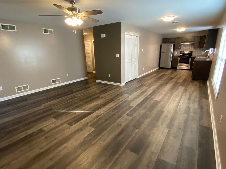 Modern Second Story Apartment with three bedrooms & two bathrooms large closets and in-unit washer & dryer. Features: *Newly Remodeled* modern 3 Bedroom, 2 Bathroom Second Story Apartment with accessible parking. Living Spaces: Large living room and large open kitchen with ample closet and pantry storage, in-unit washer & dryer luxury, and vinyl flooring throughout. Utilities: Central air and energy efficient gas heating. Tenant pays Sewer, Electric, Gas, Garbage, and Telecomms. Appliances: stainless steel refrigerator, dishwasher, stove, washer & dryer included. Location: Second Story Apartment with convenient parking on Garman Drive. Rent: $1095.00 / Mo. +Tenant Utilities. No Smoking, No Pets.