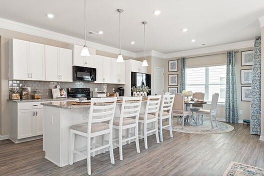 Outdoor lovers prefer the Braselton, by Smith Douglas Homes, for its unique rear corner covered porch, directly accessible from a large eat-in kitchen overlooking the family room. On the second floor, an over-sized loft separates the large private owner's suite from two secondary bedrooms.