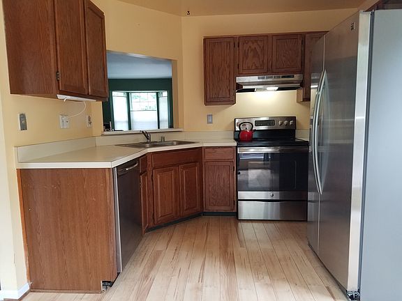 End of group townhouse backing to woods and farms. Newly carpeted, new stainless steel refrigerator, stove and dishwasher. New roof just this spring, new water heater 1 year ago, HVAC system complete replaced 2011. Move in ready! Large deck out back, like another room during warm months. Walk out finished basement with fresh carpet! Older washer and dryer included (if needed).