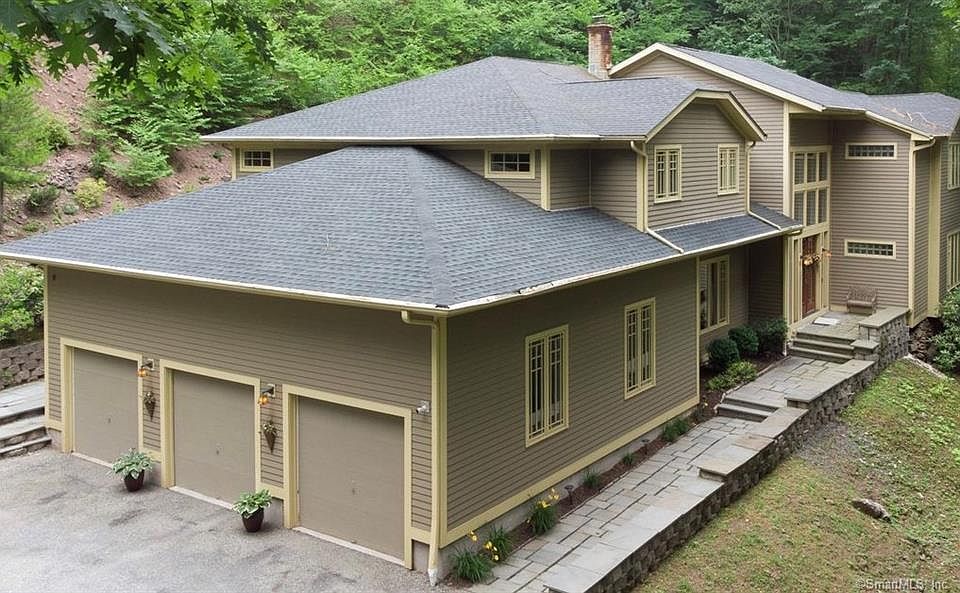 Exquisite home with an amazing floor plan on a very private property. Walk through the front door into the 2 story foyer with a grand staircase that is a take off of a Frank Lloyd Wright design. The foyer opens nicely into all of the first floor space. The dining room, with wood floors, flows into the kitchen dining area and then into the kitchen. The kitchen features cathedral ceilings with beautiful open glass cabinets, granite counters, and stainless steel appliances featuring a commercial cooktop and exhaust ventilation. The living room features a wood burning fireplace, cathedral ceiling and there are 4 sets of French doors to the slate patio . First floor master bedroom has a walk in closet and a large full bathroom that is newly updated in 2021. The first floor also has a mudroom and a laundry room off of the 3 car garage. The 1st floor area is heated by Wisboro Infloor heating, new boiler installed 2021. The 2nd bedroom located on the 2nd floor can also be used as a master bedroom; it has a full bathroom and a large walk in closet. The 3rd bedroom is located down the hall and has it's own bathroom, as well as a laundry hook up for your convenience. There is an additional room that would make a great home office. It also has a private entrance if you need an in-law apartment or au pair living space. 20 minutes to Metro North Rail.